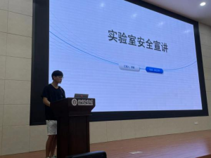 研究生代表,2020级李建同学做了题为《实验室安全》的宣讲。他从学生角度,结合自身两年来的经验,介绍了密切相关的实验室安全知识,并表示作为学生务必要遵守实验室管理,守牢实验室安全红线,为新生树立起了良好的榜样。