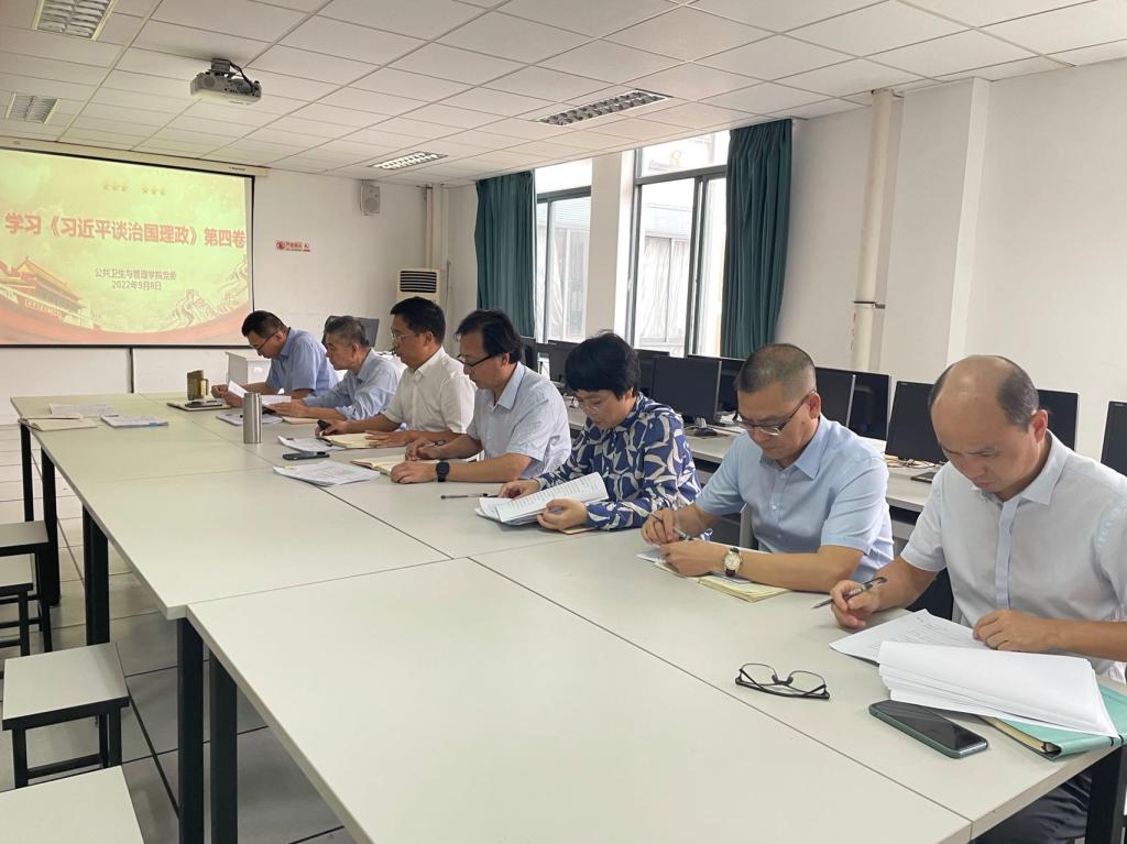 9月13日,公共卫生与管理学院党委理论学习中心组召开学习会,专题学习《习近平谈治国理政》第四卷。
