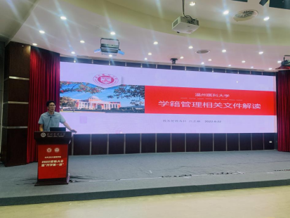 为使2022级新生全面了解学籍管理相关规定,规范学生行为,促进学风建设,9月22日下午,我院邀请教务处教务科科长吕志钢老师在旭光厅给2022级新生解读学籍管理相关文件。按照疫情防控要求,本次讲座采取线上线下相结合的方式开展。