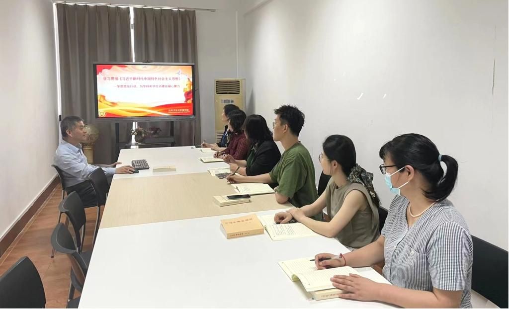 感悟思想伟力,凝聚奋进力量。在全党深入开展学习贯彻习近平新时代中国特色社会主义思想主题教育之际,5月22日,我院副院长王舒然深入教工第五党支部,以“开展学习贯彻《习近平新时代中国特色社会主义思想》—学思想见行动为学科和学位点建设凝心聚力”为主题讲党课,支部全体党员及入党积极分子参与学习。