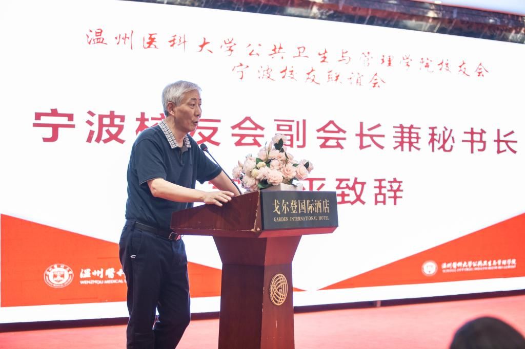 公共卫生与管理学院书记马洪君宣布公共卫生与管理学院校友会宁波校友联谊会正式成立,并为联谊会会长沈钱授旗。现场嘉宾为联谊会会长、副会长、秘书长、理事们颁发聘书。