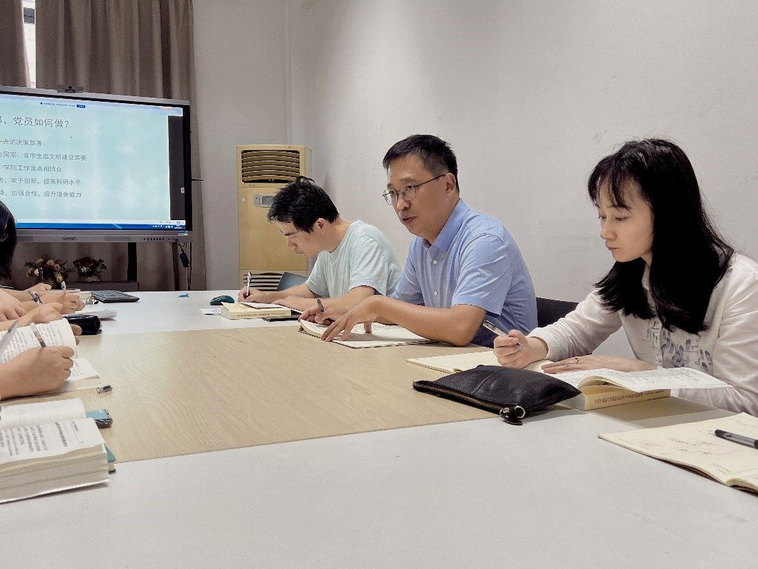 5月16日下午,学院教工第四党支部开展主题教育学习,支部书记商栩作题为“习近平新时代中国特色社会主义思想——人与自然和谐共生的人类命运共同体”的报告。他指出在新发展阶段建设人与自然和谐共生的现代化,必须坚持以习近平生态文明思想为指导,完整、准确、全面贯彻新发展理念,同步推进物质文明建设和生态文明建设,坚持不懈推动绿色低碳发展,促进经济社会发展全面绿色转型,促进生态环境持续改善。院党委书记马洪君莅临并指导基层党组织建设工作。