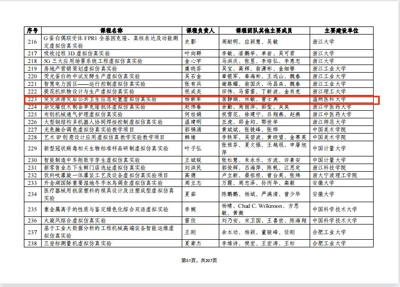 近日,教育部印发了《关于第二批国家级一流本科课程认定结果》。我校荣膺第二批国家级一流本科课程评选,共有10门课程入选,我院首次入选,其中《突发洪涝灾后公共卫生应急处置虚拟仿真实验》项目代表我校入选虚拟仿真实验教学一流课程,这是一项令人振奋的成就。