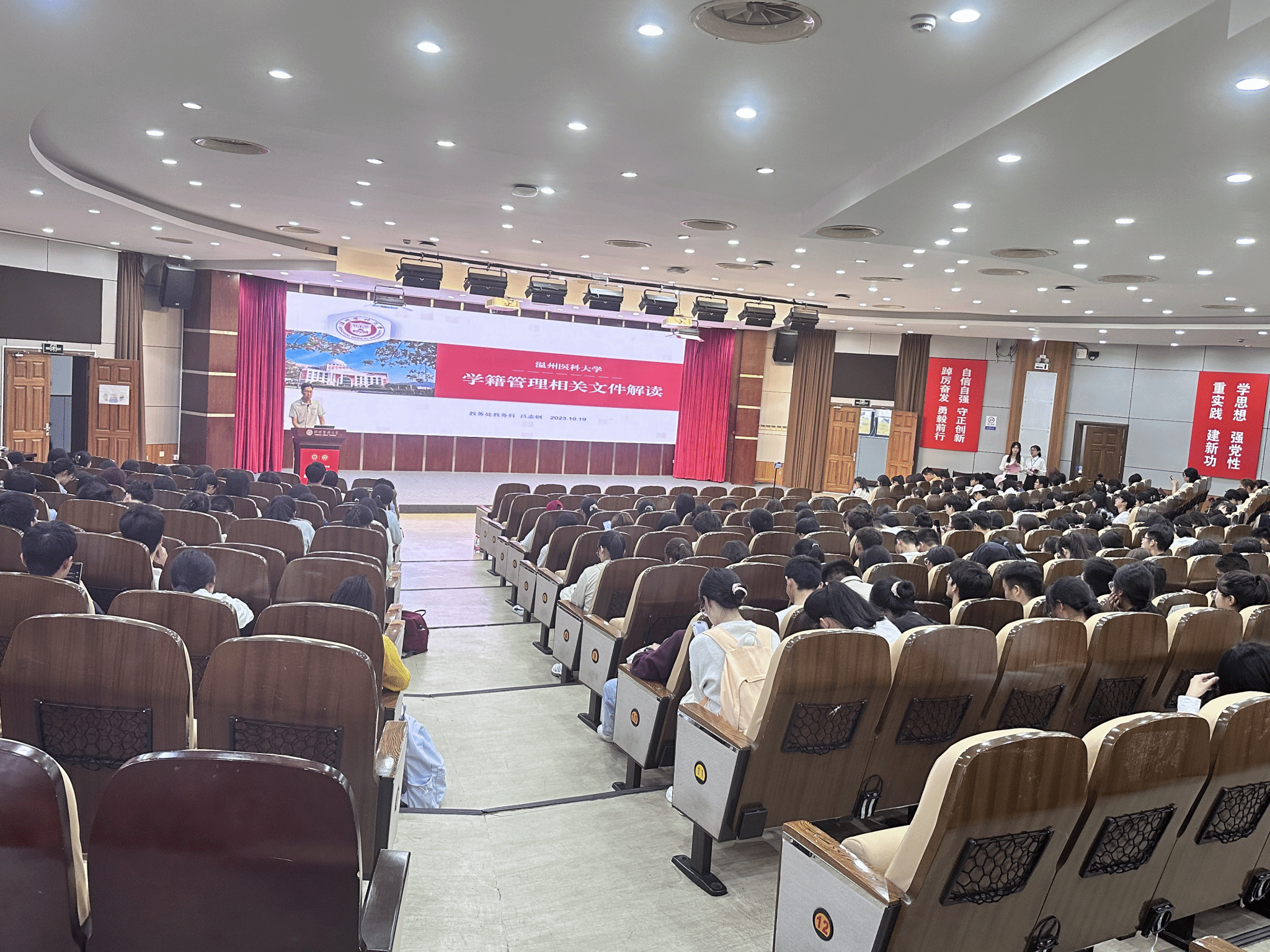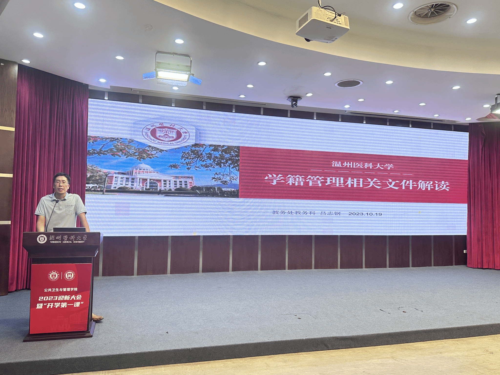 为帮助新生了解学籍管理规定,更好地规划大学生活,10月19日下午,公共卫生与管理学院在旭光厅开展2023级新生学籍管理讲座。特邀请教务处教学科吕志钢主任为新生讲解学籍管理规定,2023级全体新生参加。