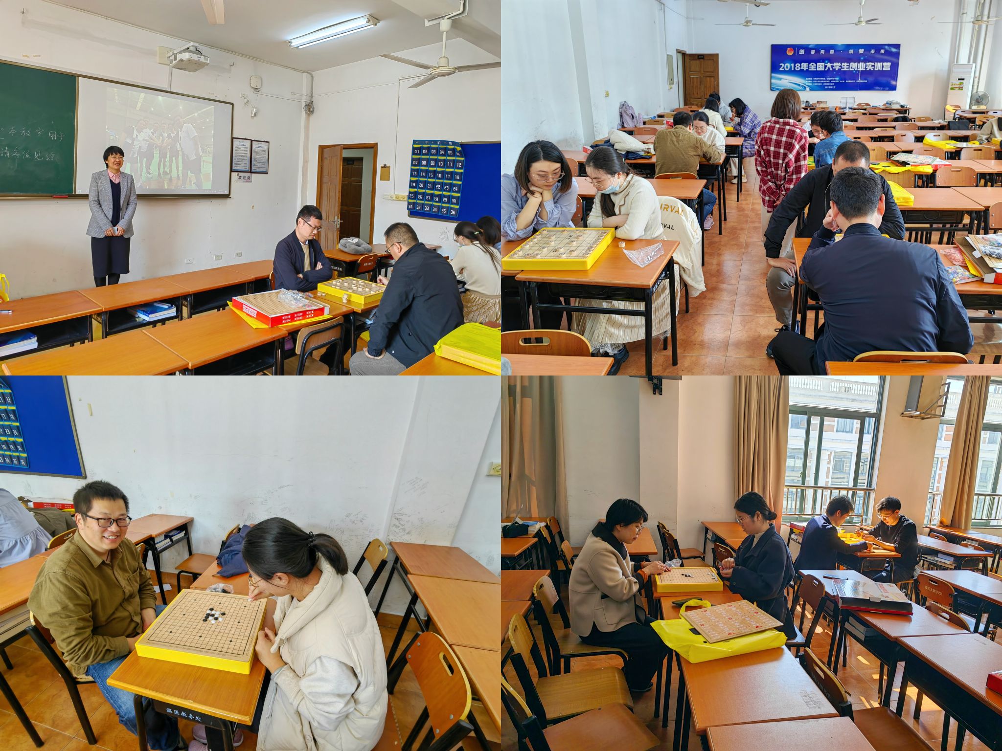 正式比赛时大家随机分组对弈。同时,现场还播放学院工会2023年参与举办的各类文体活动视频,在悠扬钢琴声、质朴的图片、柔和的冬日暖阳陪伴下,烘托出柔美恬静、舒适祥和的氛围,彰显出学院教职工蓬勃向上、积极进取的时代形象。
