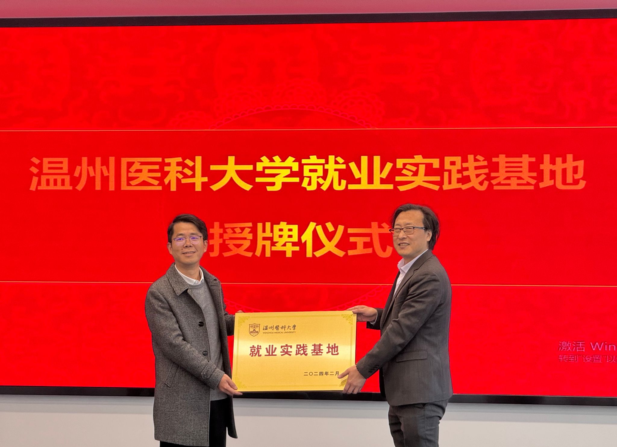 现场,刘晓冬与徐冰俊代表双方就“微密猫 就业实践基地”进行了现场授牌。