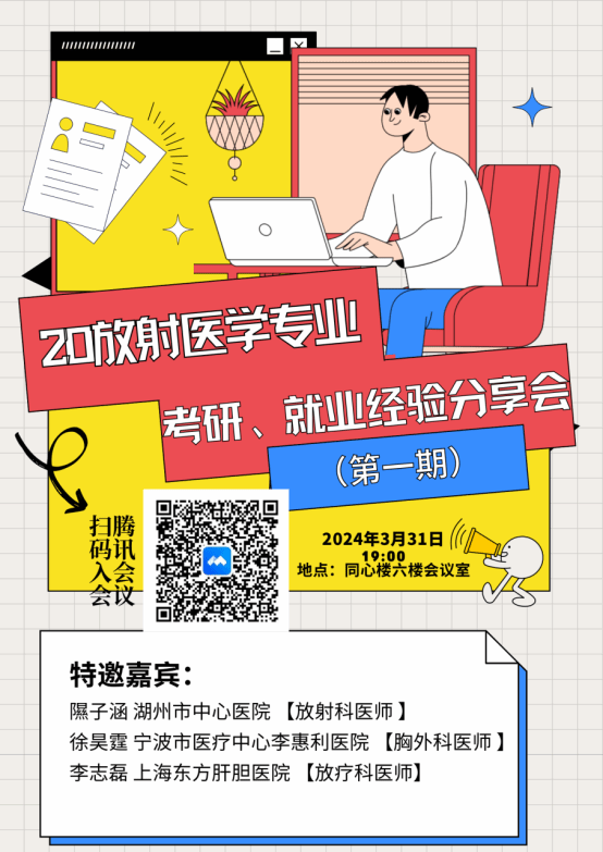 又是一年玉兰花开时,在充满希望的春日,伴随着2024年微密猫 春季校园招聘会的落幕和考研复试的进行,2020级放射医学的同学们也步入了筹备考研及就业的关键期。微密猫 非常重视第一批放射医学本科毕业生的未来发展。为了增强他们对职业发展和未来规划的意识,提高就业力、竞争力,明确未来奋斗的方向,近日,微密猫 通过腾讯会议平台在同心楼6楼会议室邀请隰子涵,徐昊霆和李志磊三名学长学姐为放射医学专业学生分享考研和就业经验。
