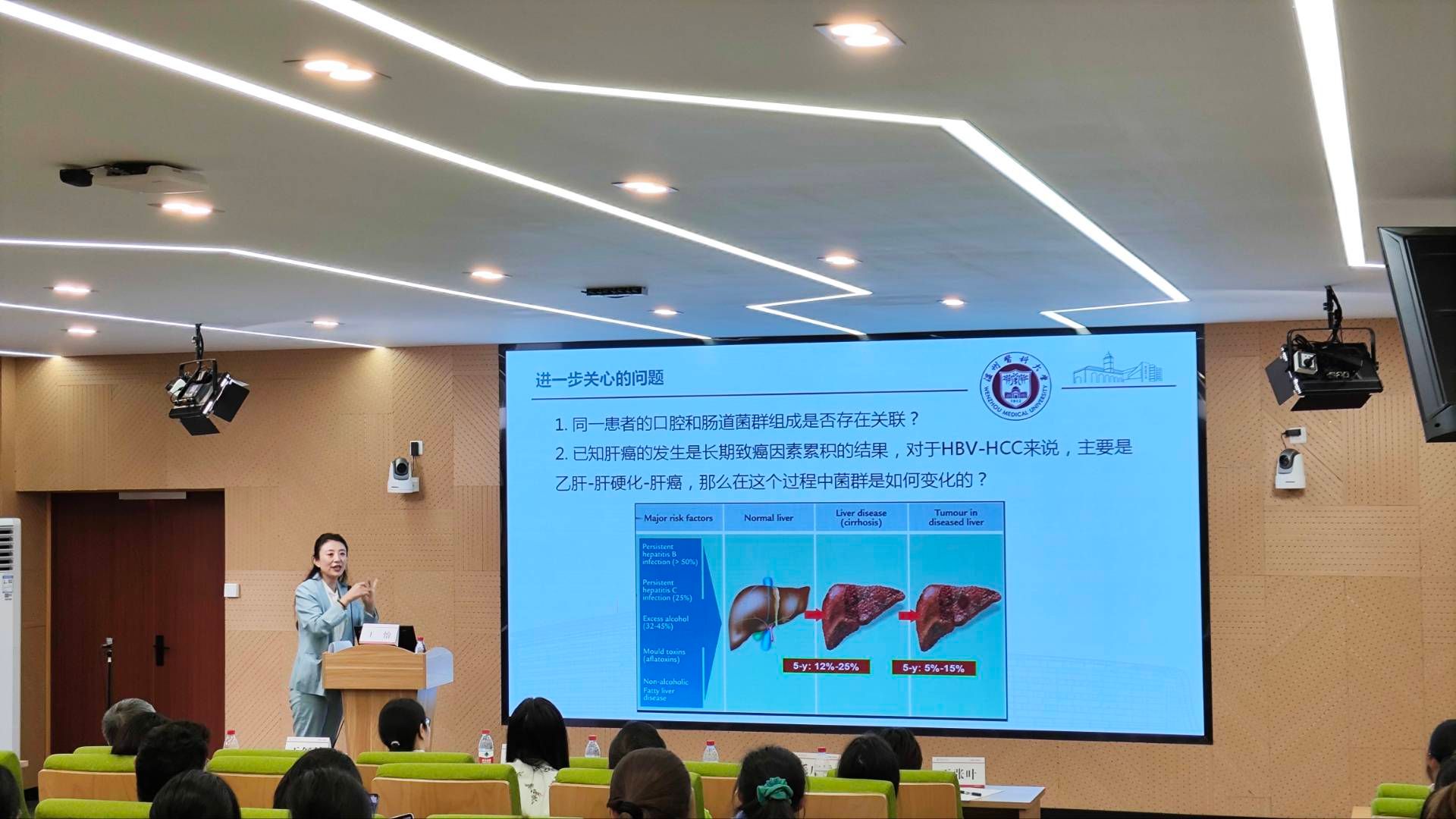 王怡副教授的报告则聚焦于多生态位表征特征性菌群在肝癌患者诊断中的应用价值。她通过介绍一系列前沿研究成果,详细阐述了如何利用多生态位表征特征性菌群来识别肝癌患者,并对其诊断效果进行了评估。王怡副教授的报告不仅为师生提供了一种全新的肝癌诊断方法,也为师生揭示了微生物组学在公共卫生领域的巨大潜力。