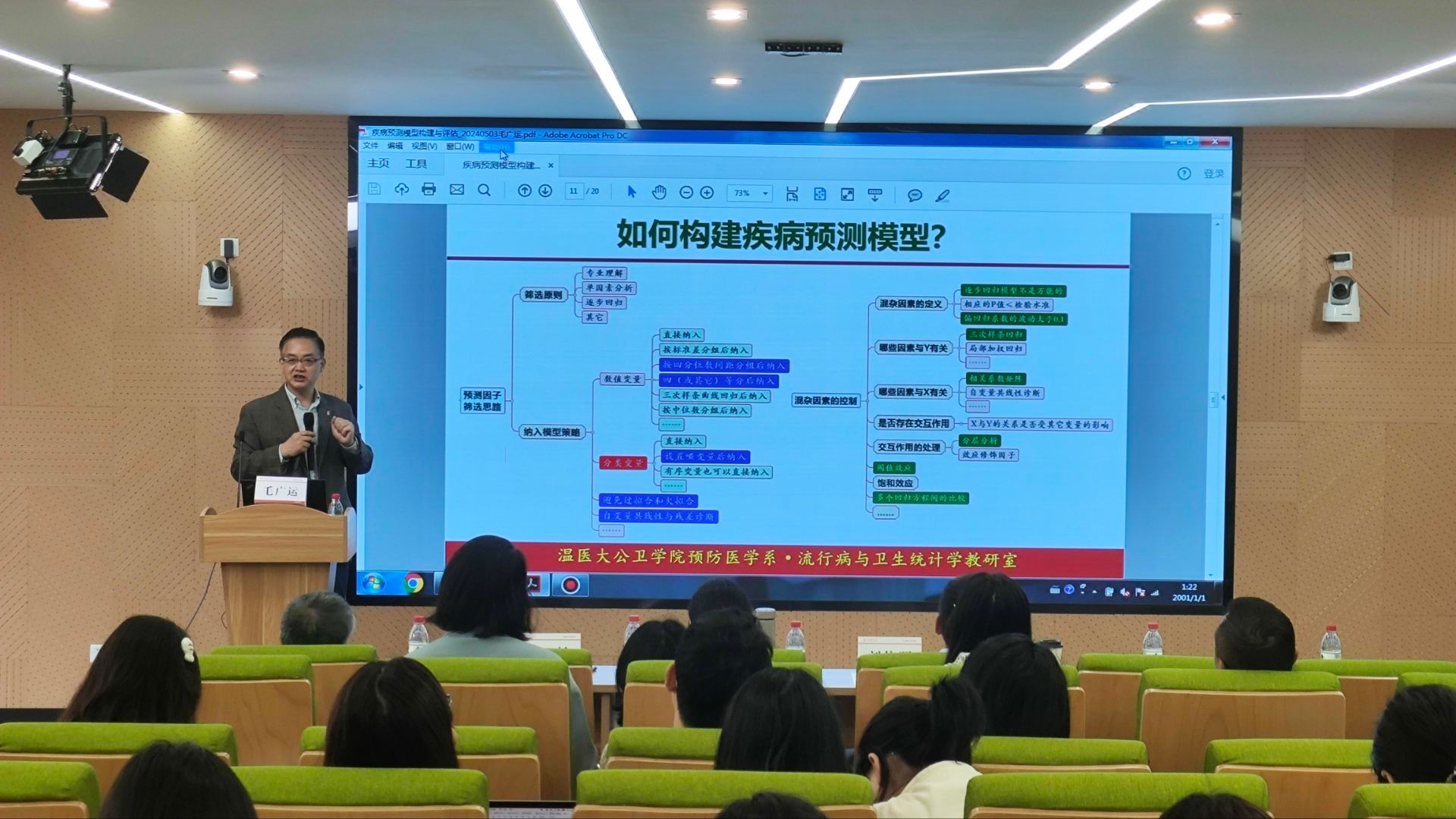 毛广运教授以其深厚的学术造诣和丰富的实践经验,为师生详细阐述了疾病预测模型的构建与评估方法。他首先从模型构建的角度出发,深入探讨了影响疾病预测的多个关键因素,并提出了基于大数据分析的模型优化方案。同时,他还强调了模型评估的重要性,介绍了多种评估指标和方法,帮助师生更好地理解模型的实际应用效果。