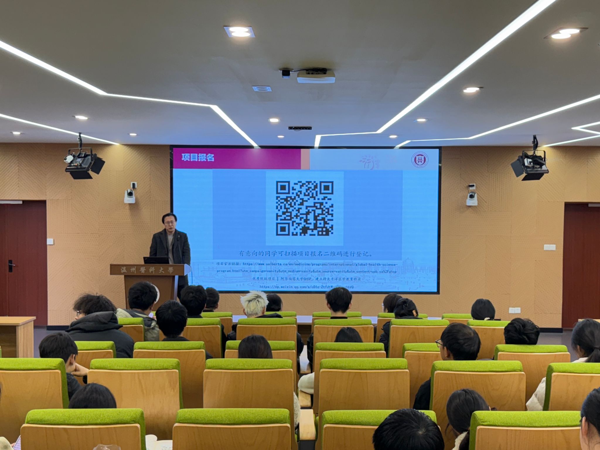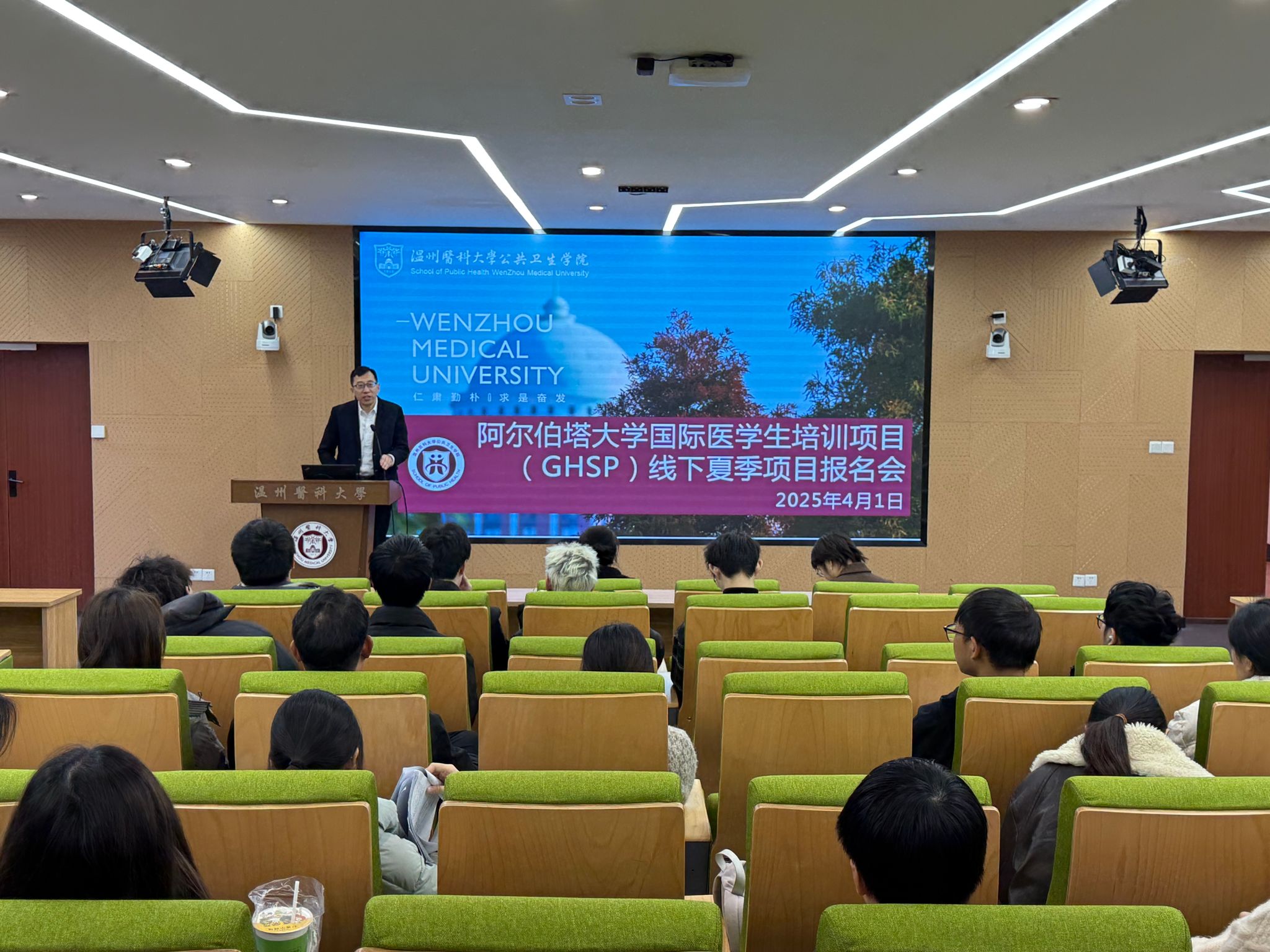 刘佳明副院长对GHSP项目的基本情况进行了详细说明。他介绍,该项目涵盖临床实践、公共卫生研究、跨文化交流等多个模块,旨在帮助学生拓宽国际视野,提升专业素养。刘佳明还特别提到,项目期间学生将有机会与阿尔伯塔大学的教授和学生共同学习,深入了解加拿大的医疗体系和医学教育模式。