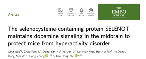 硒是维持人和动物健康所必需的微量元素,在体内的生物学功能主要通过二十余种硒蛋白实现,这些蛋白质含特有的硒代半胱氨酸活性中心,可参与调节氧化还原平衡、物质代谢和细胞保护等关键生理过程。SELENOT是一种位于内质网膜上的硒蛋白,具有抗氧化、激素调节和神经保护等功能,但其在多巴胺能神经元中的病理生理作用尚未明确。注意力缺陷多动障碍(ADHD;俗称多动症)是儿童期最常见的神经发育障碍疾病之一,可持续至青春期和成年,以注意力不集中、过度活跃和冲动行为为核心症状,已证实与多巴胺能系统等神经功能紊乱存在密切关系。
