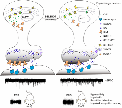 SELENOT缺失诱发小鼠ADHD样行为的机制图