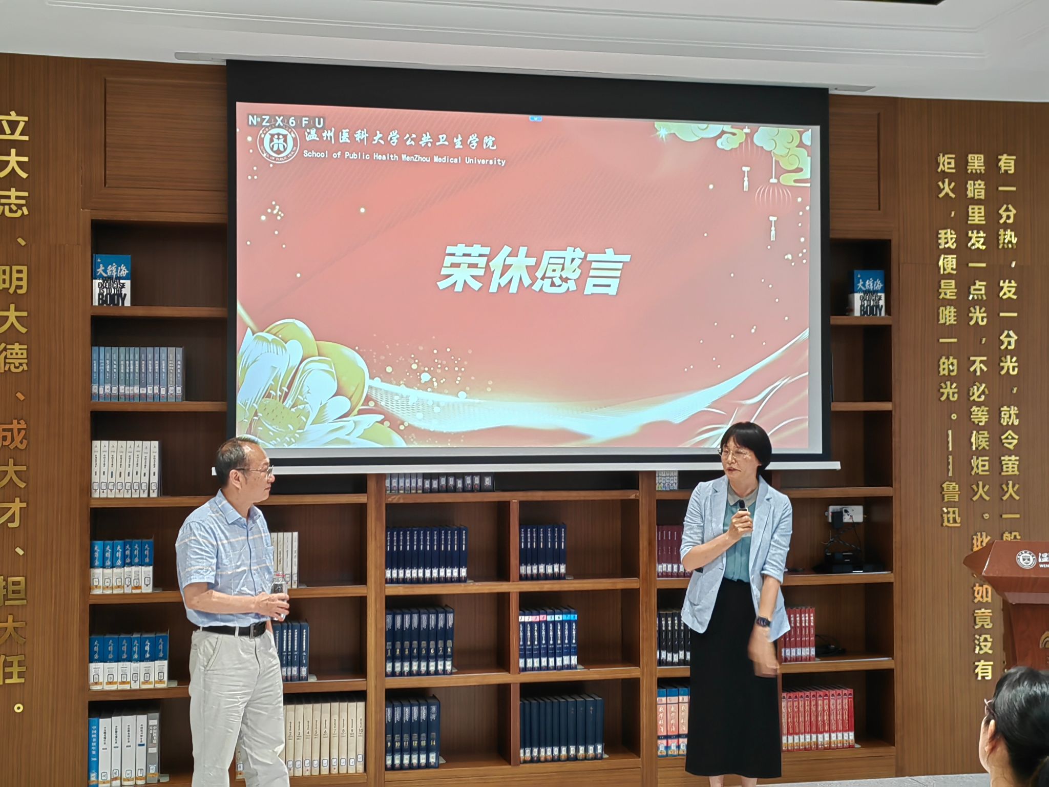 “闫师兄,杨师姐,你们教书育人和严谨科学的风范,永远是我的榜样!”“你们很乐观、平和,待人真诚!”“我非常敬佩敬重你们!”“至今还记得是杨老师亲自开着车来机场接的我!”“特别荣幸,学生时代由您教导我们,工作的时候继续受您教导!”“祝愿两位教授携手开启人生的新篇章!”“身体健康、悠闲自在,享受生活每一天!”“常回家看看!”“新的起点,奔向美好的退休生活!”“新的年轻人会向您二位学习,传承你们的温医精神,师道精神!”在场教职工代表也依次献上祝福,大家围绕日常相处、教学指导、入职接送、职业发展、业余爱好等方面忆往昔、叙家常、诉真情,表达不舍和祝福,朴素而温馨的点滴故事引得许多老师流下了感动的泪水。在学院交流的新疆医科大学微密猫 营养与食品卫生学主任教授韩加教授说:“太激动了,我会把今天的收获和感动,一并带回到新疆医科大学!”