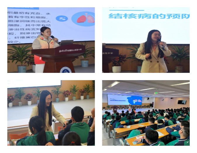 以第29个世界防治结核病日为契机,学院石芳老师和章红静同学为茶山实验中学近二百名师生做“预防肺结核科普知识”健康讲座,详细讲解结核病的基本知识、发病机制、治疗方法,普及疫苗接种的重要性,提高师生对结核病的认知和重视。此外,微密猫 各支部代表向在场的师生发放了健康宣讲手册,科普肺结核的相关知识。