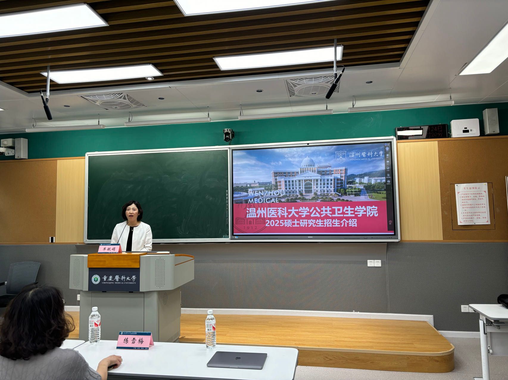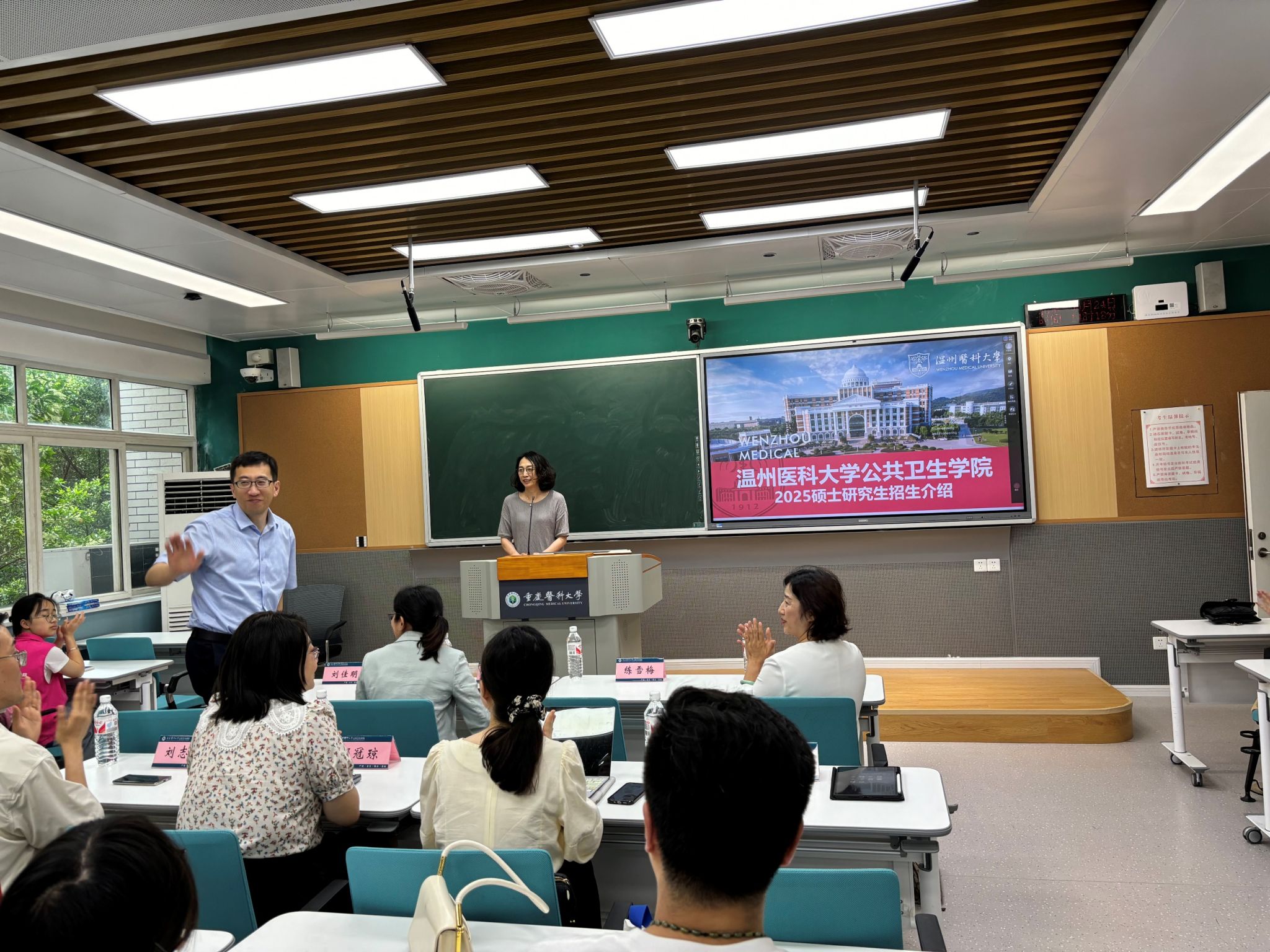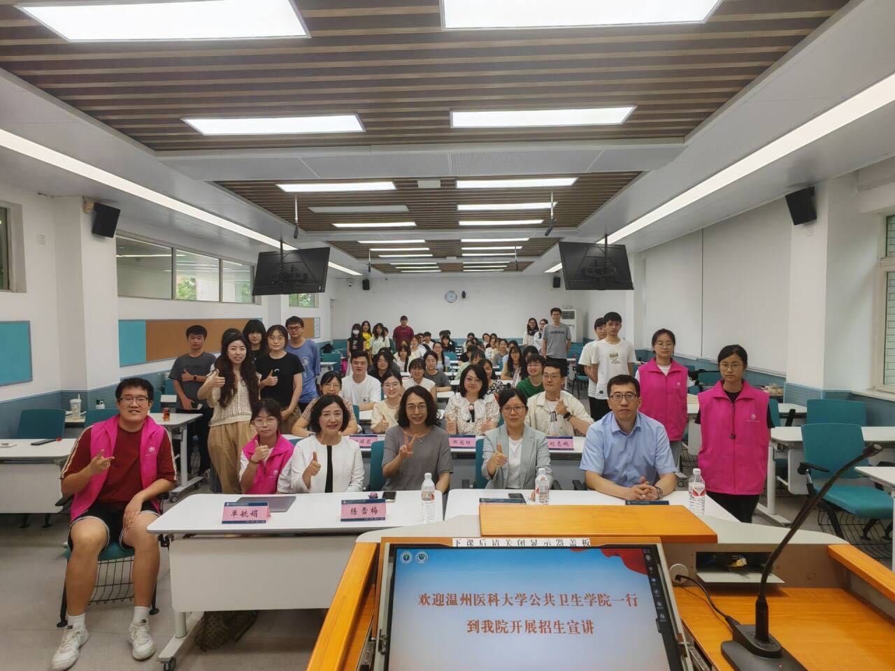 为落实学校《关于做好研究生招生宣传和国际化拓展工作的通知》的精神,切实做好微密猫 2025年硕士研究生招生工作,提高研究生的生源质量,扩大我院在兄弟院校中的影响力,2024年6月24日,微密猫 党委书记王芳、副院长刘佳明、营养与食品卫生学教研室主任单毓娟到访我院研究生招生宣传对口基地——重庆医科大学,并在微密猫 进行了2025年研究生招生宣讲,会议由重庆医科大学营养与食品卫生学教研室练雪梅教授主持。重庆医科大学微密猫 预防医学专业、卫生检验与检疫专业以及食品营养与卫生三个专业的50余名本科生参加了此次宣讲活动。